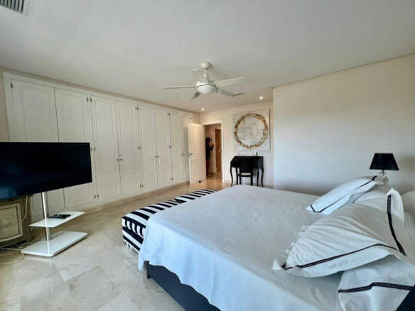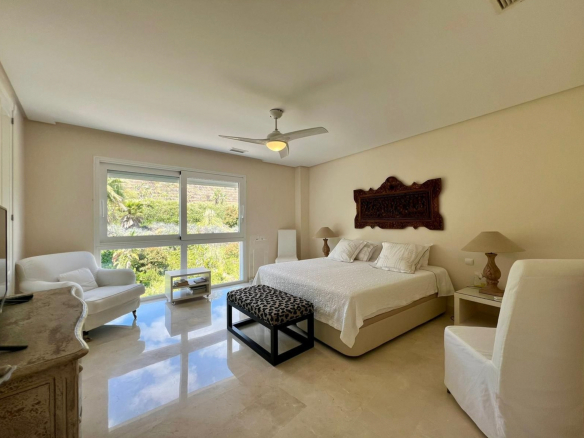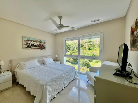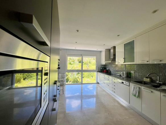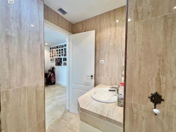 La communauté fermée dispose d’un système de sécurité 24h/24, de deux piscines (dont une chauffée) et d’un terrain de paddle. L’appartement comprend quatre places de parking et une grande salle de stockage.