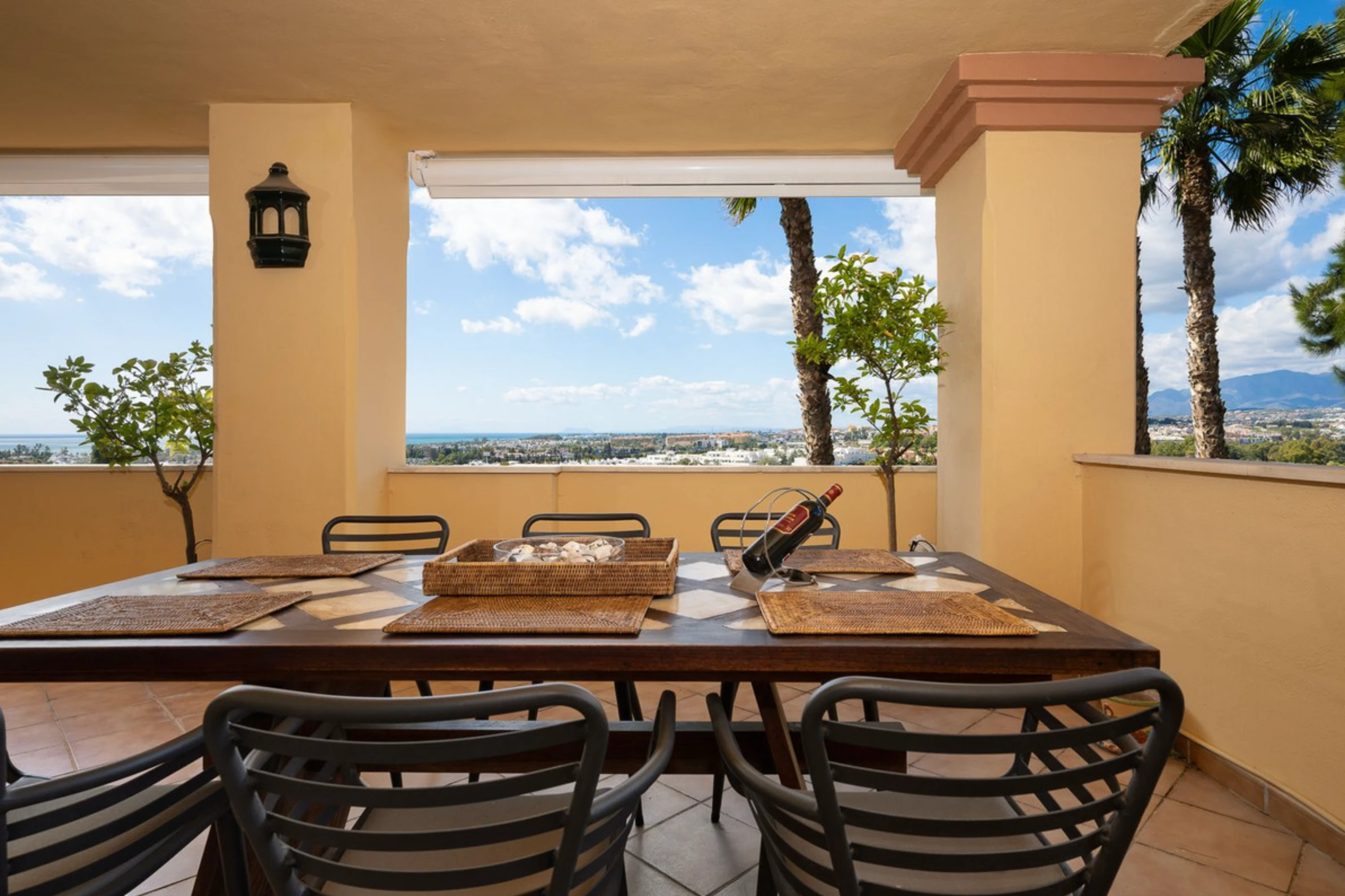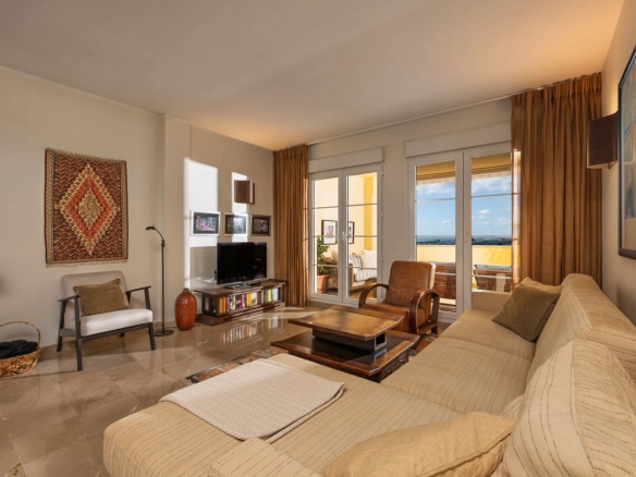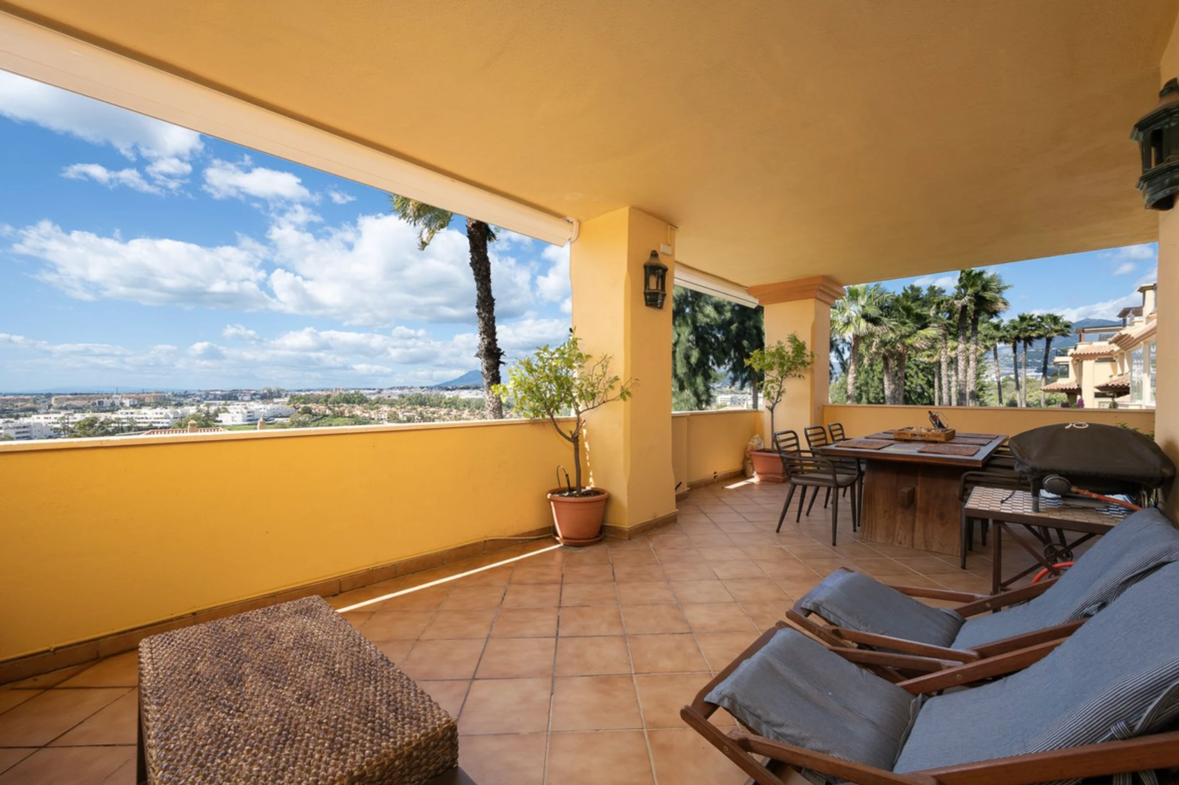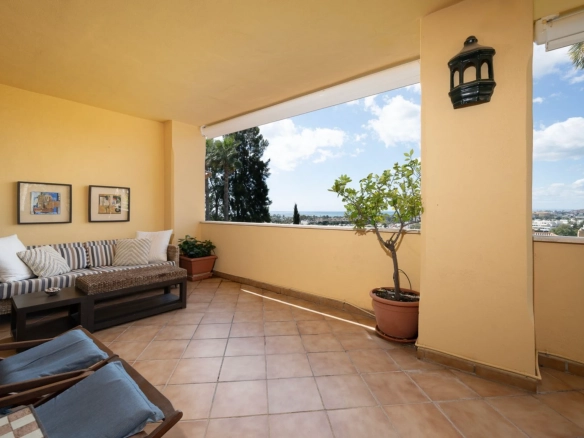 Bright west-facing apartment with 2 bedrooms, 2 bathrooms, and a 25 sqm terrace with open views to the valley, mountains, and partial sea. No buildings in front – total privacy.