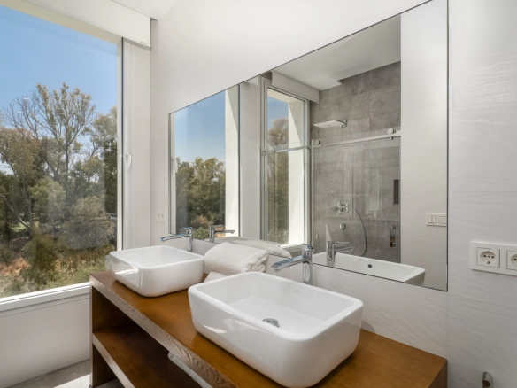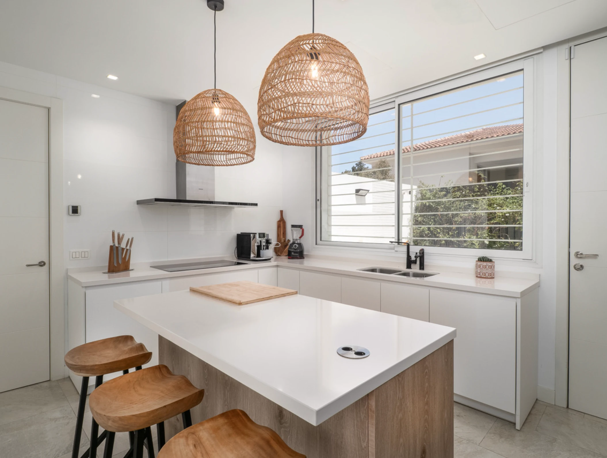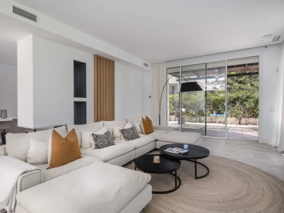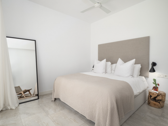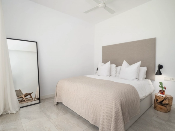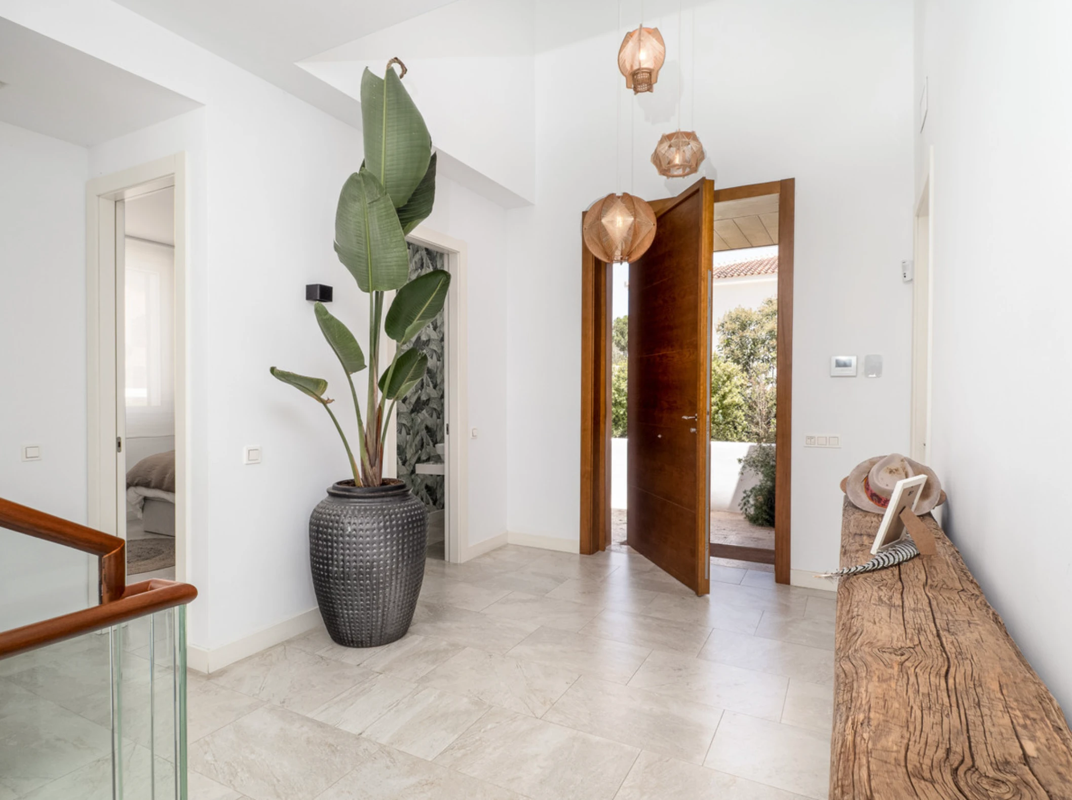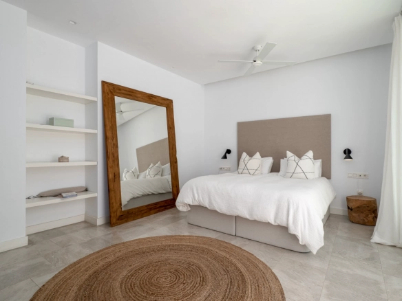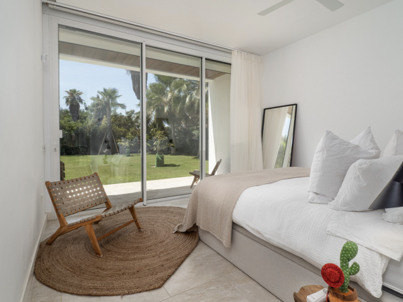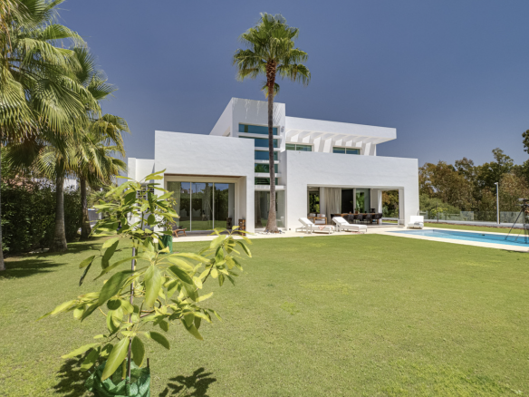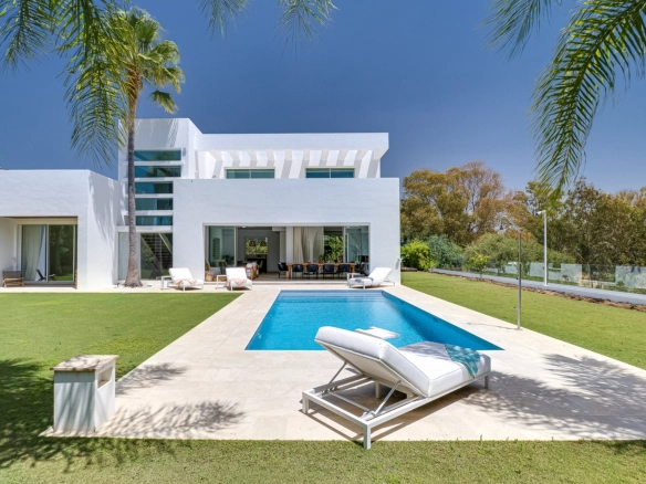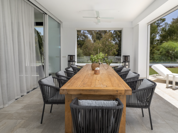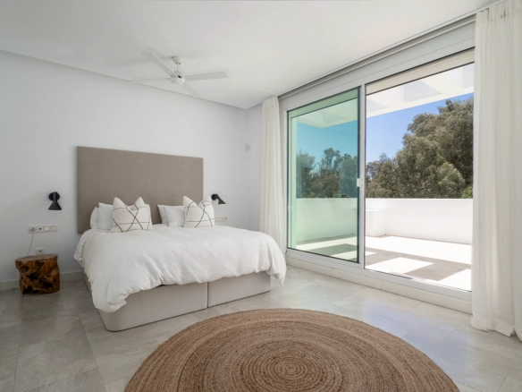 Charming detached villa on a flat plot, just steps from the sea, in the exclusive Casasola area near Guadalmina Baja. Bright and functional Ibiza style, with open-plan living, floor-to-ceiling windows, and seamless access to a covered terrace and pool — all on one level.