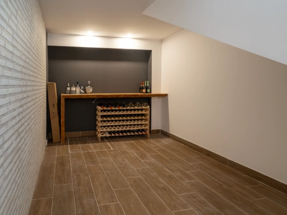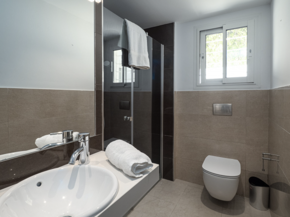 Includes a high-end kitchen, three en-suite bedrooms (plus one extra on the lower level), a master suite with private terrace and office, gym, spa with sauna and ice bath, wine cellar, and a spacious garage. South-facing, very private and full of natural light.