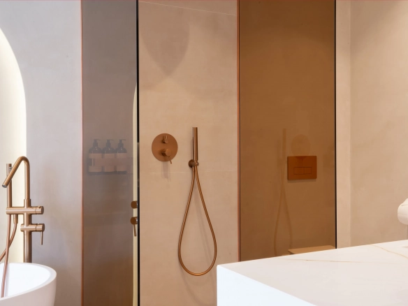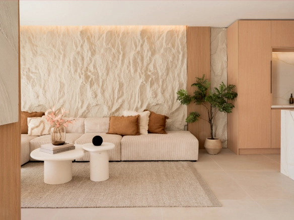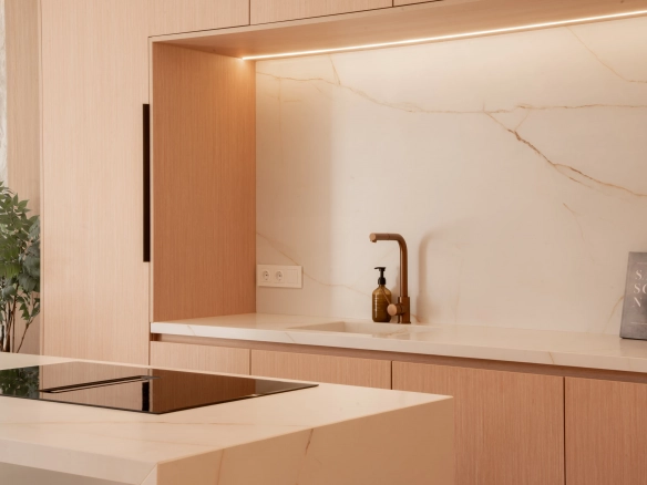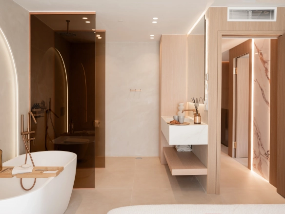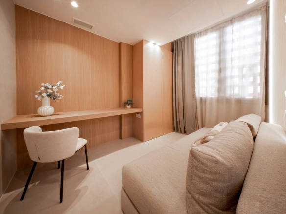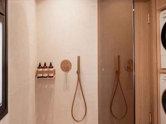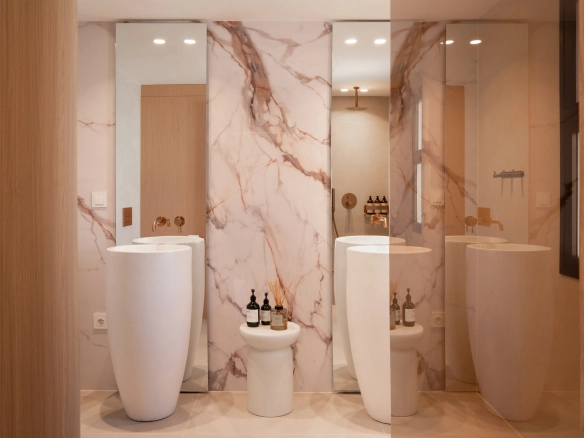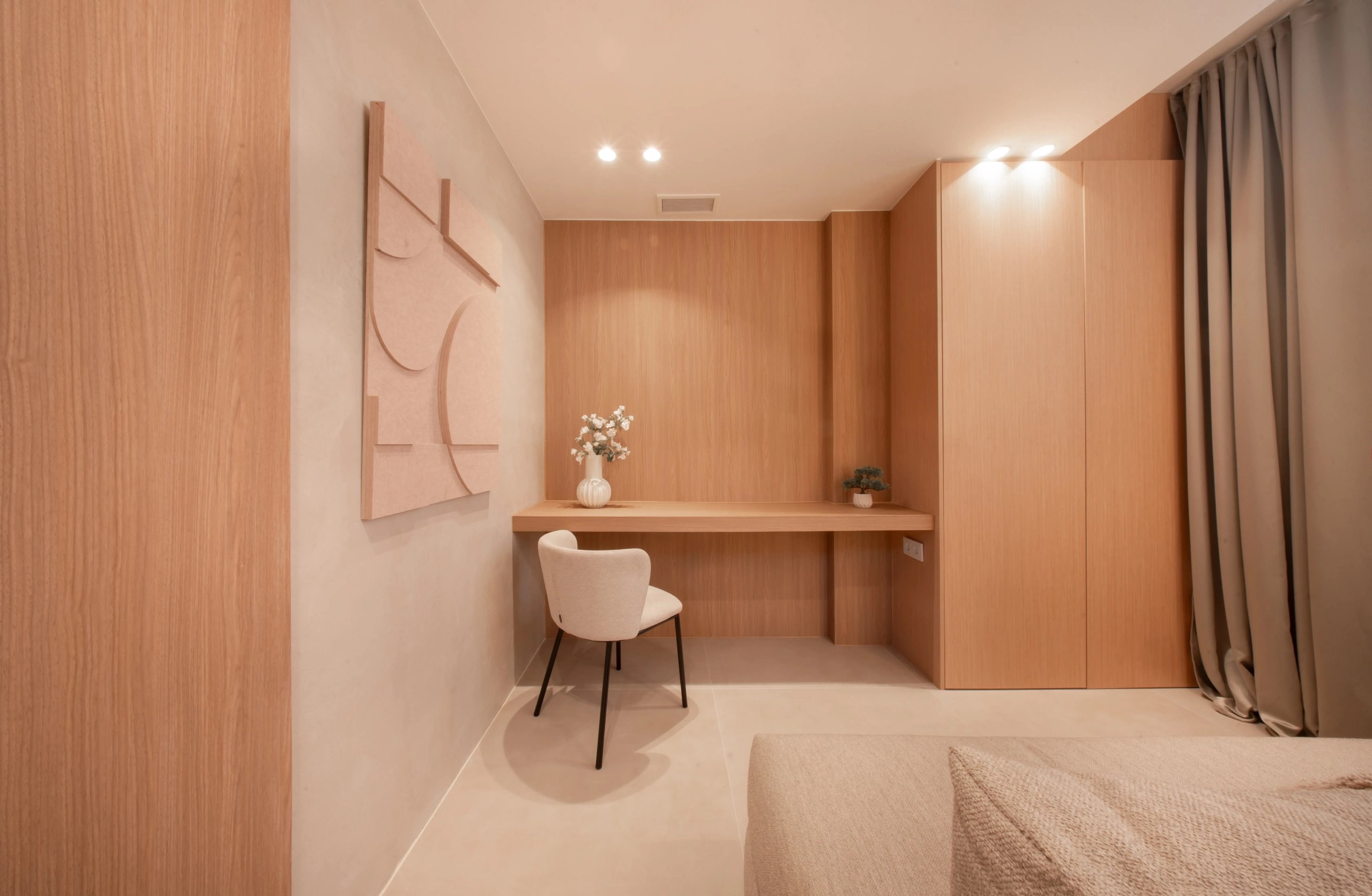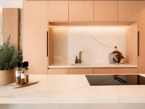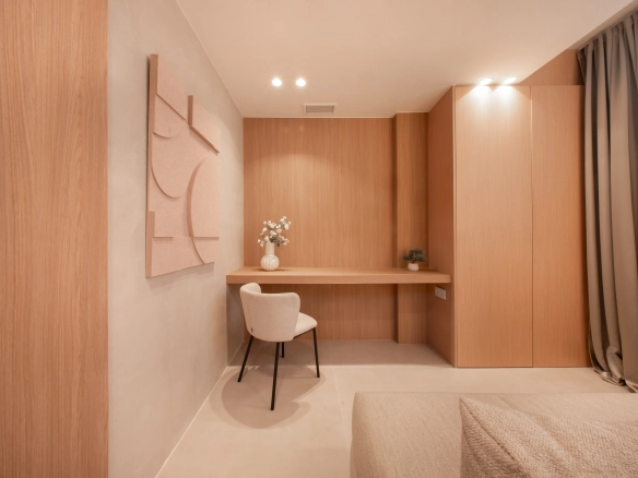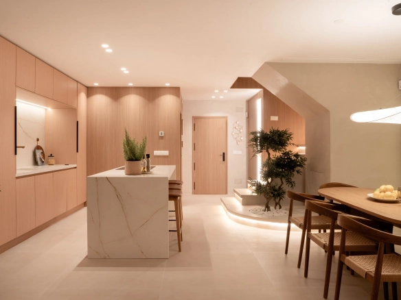 The property offers four bedrooms, one of them en-suite, a second full bathroom and a guest toilet. Recently refurbished with high-quality finishes, it features an open-plan kitchen, bright living areas, micro-cement details, bespoke carpentry, stone floors, and central air conditioning with Airzone. The bathrooms benefit from underfloor heating.