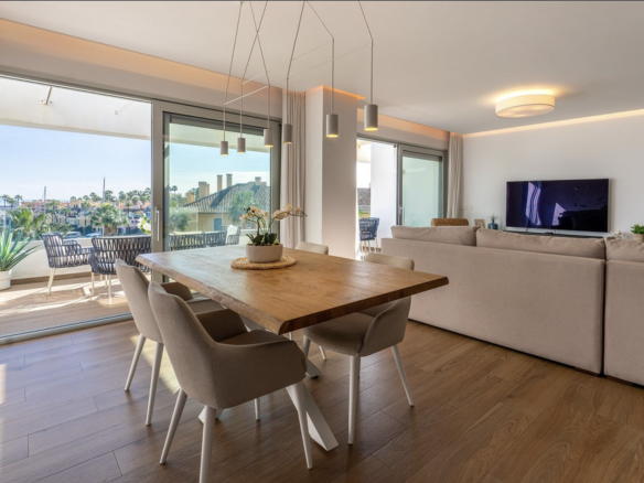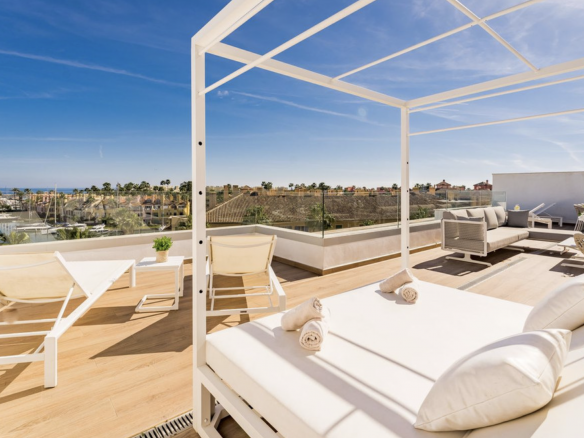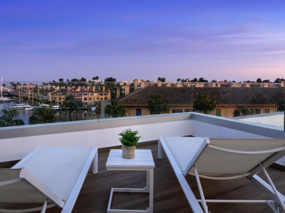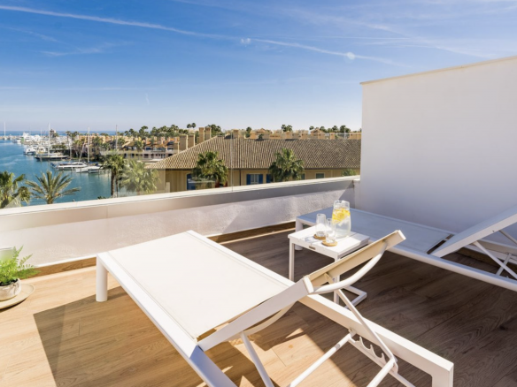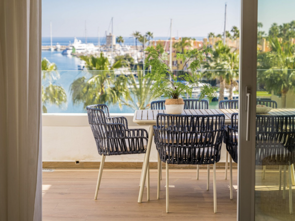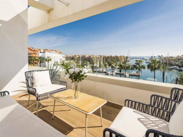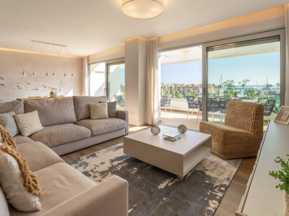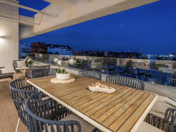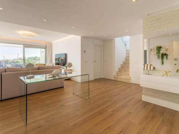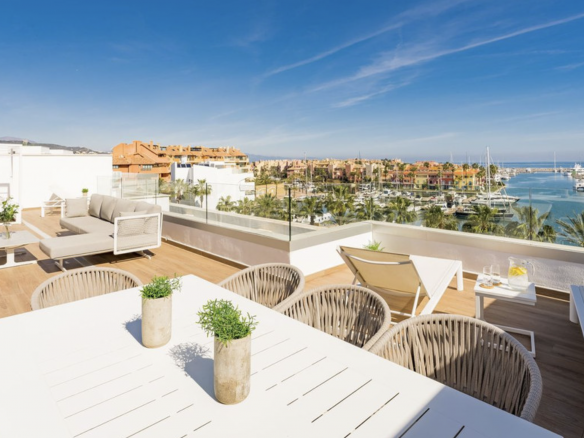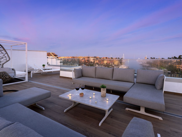 Located in one of the most sought-after areas of the Costa del Sol, this elegant double penthouse offers stunning views of the sea and the marina.