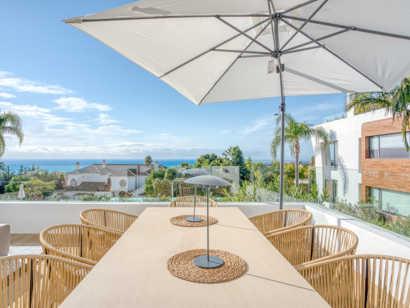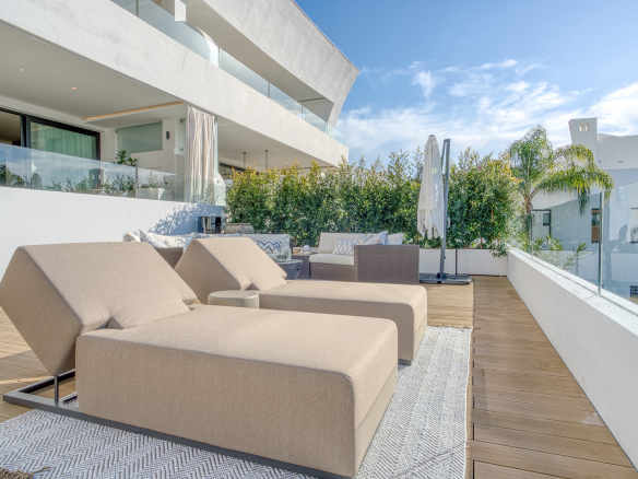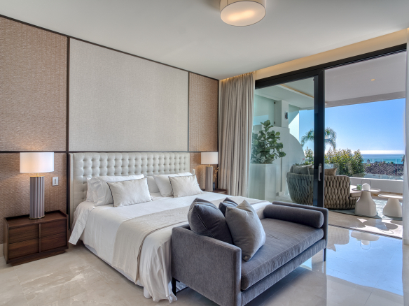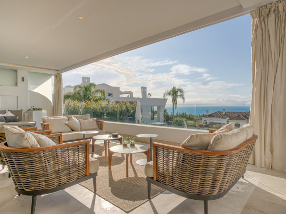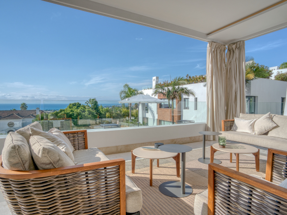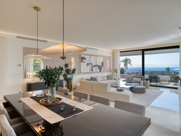 Elegant four-bedroom property located in La Reserva de Sierra Blanca, one of the most exclusive areas on Marbella’s Golden Mile. This spacious south-facing duplex offers beautiful sea views, private terraces, and a layout designed for comfortable living.
