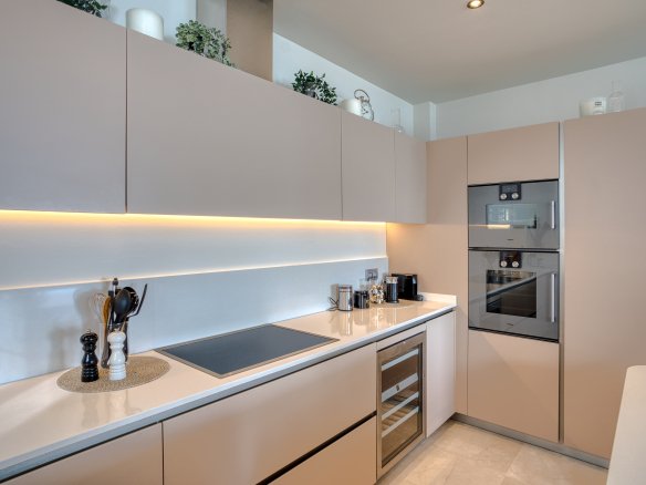 The property comes with three private parking spaces, a storage room, air conditioning, underfloor heating, and access to communal gardens, pool, gym, sauna, and 24-hour security.
