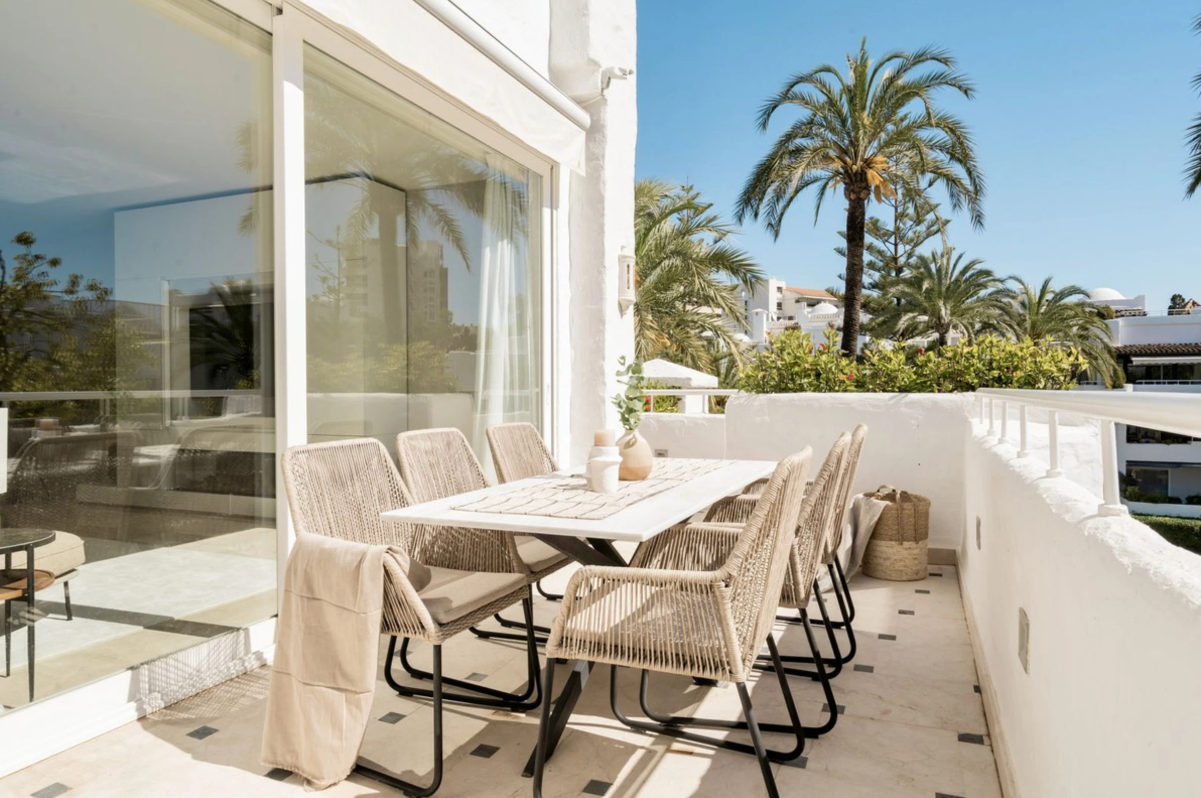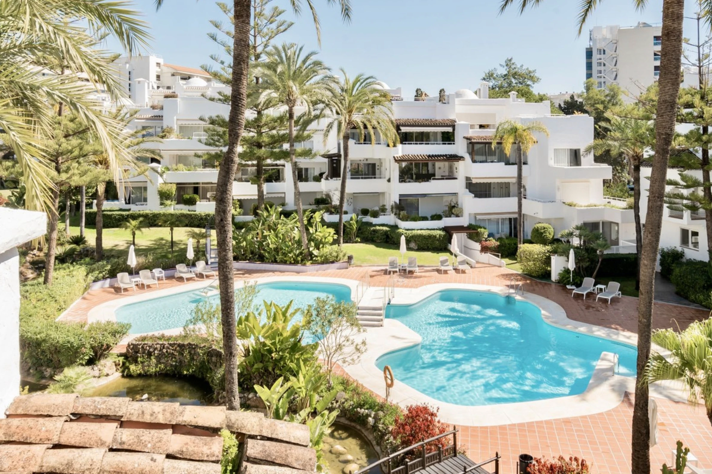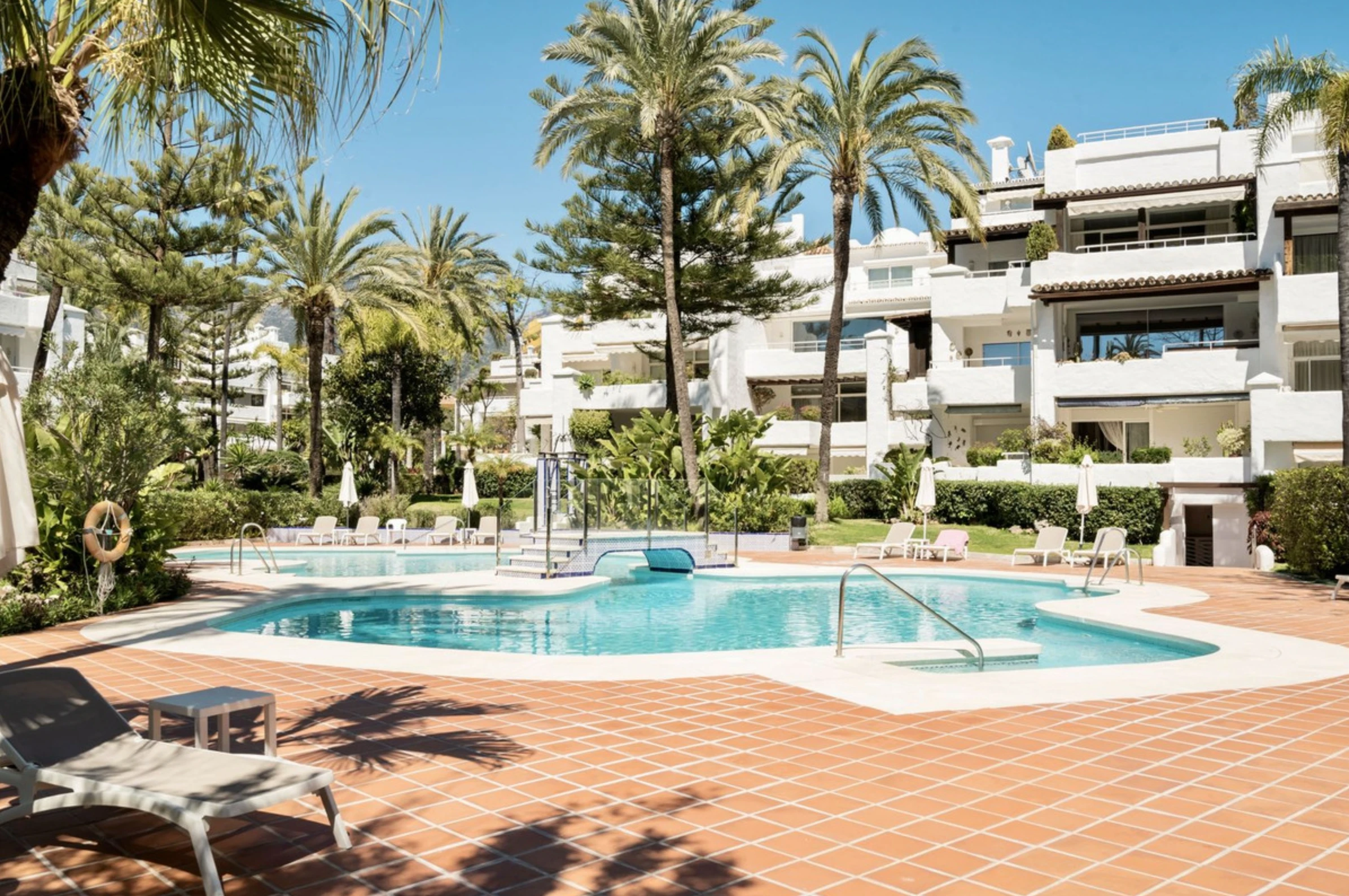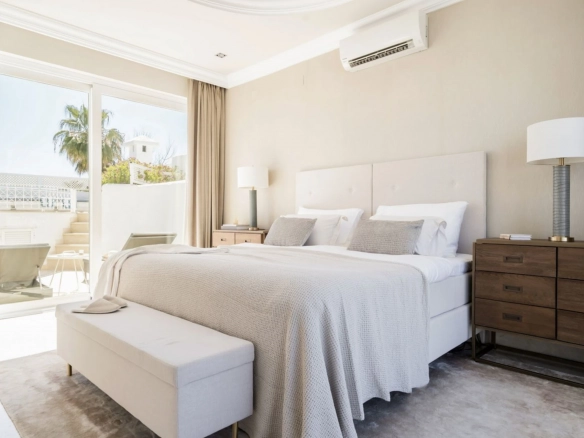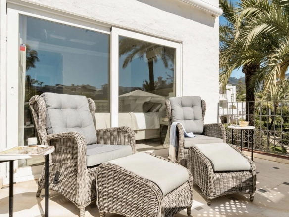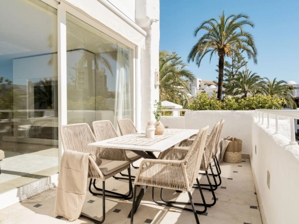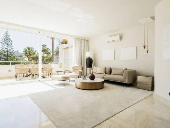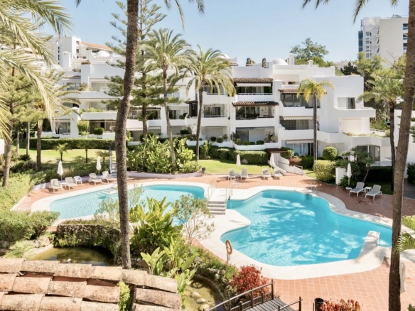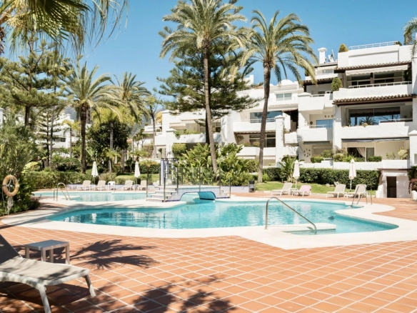 Recently renovated with high-quality finishes. Gated complex with tropical gardens and direct beach access, just a short walk from Puente Romano and Marbella center.
