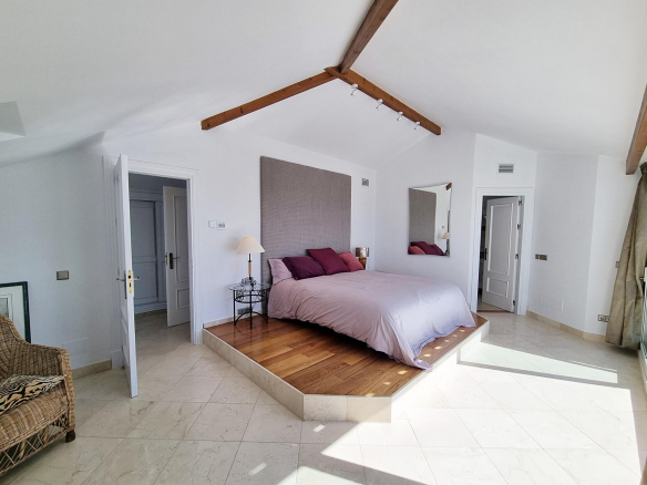 This stunning villa perfectly combines modern design with an unbeatable location, just five minutes from Marbella’s city center and ten minutes from Puerto Banús. Plus, the beach is only a 20-minute walk away. One of its greatest assets is the breathtaking panoramic views of the sea, Africa, and Gibraltar—a rare and exclusive privilege.