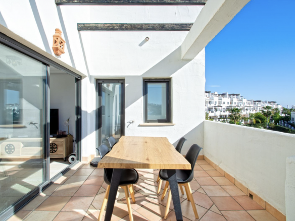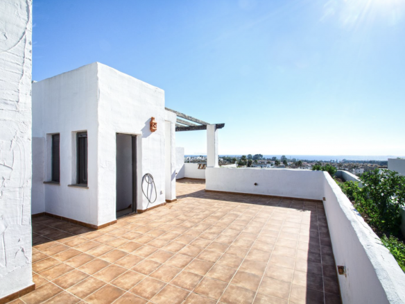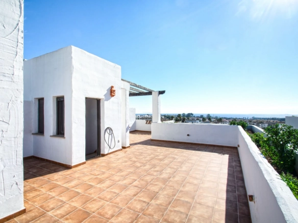 This beautiful duplex penthouse is located in the quiet area of Selwo, Estepona. It offers modern style, comfort, and amazing views.