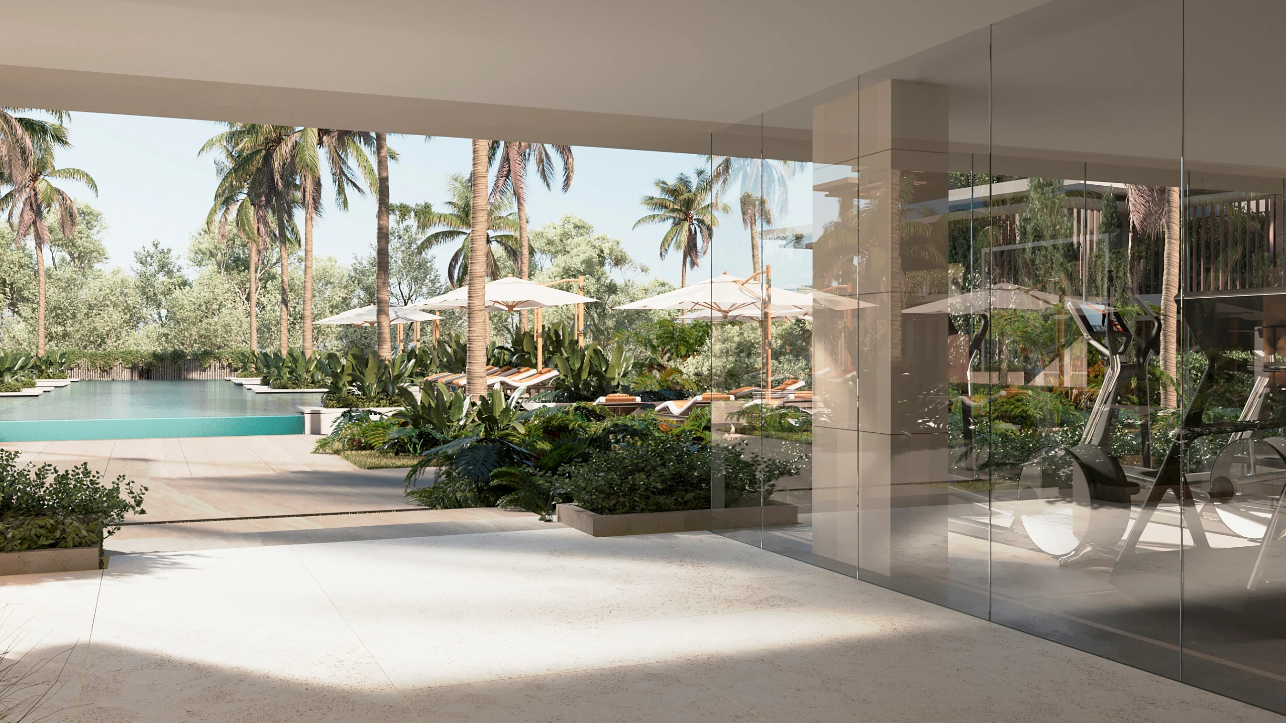 Outdoor and heated indoor pools, Dedicated co-working space, Concierge service.